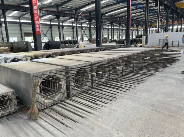 3、不出筋桁架疊合板技術(shù):該技術(shù)可避免傳統(tǒng)疊合板四面出筋,利于工廠(chǎng)智能化升,同時(shí)也可有效避免疊合板安裝過(guò)程中與梁鋼筋碰撞問(wèn)題,實(shí)現(xiàn)了疊合板的快速吊裝,節(jié)省了吊裝及鋼筋的作業(yè)時(shí)長(zhǎng),有效保證整個(gè)項(xiàng)目的進(jìn)度。