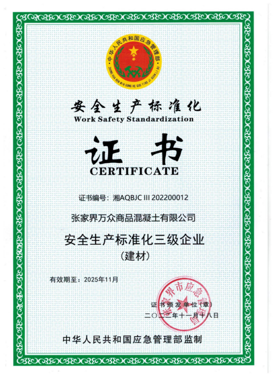 商品混凝土:安全標準化三級企業(yè)