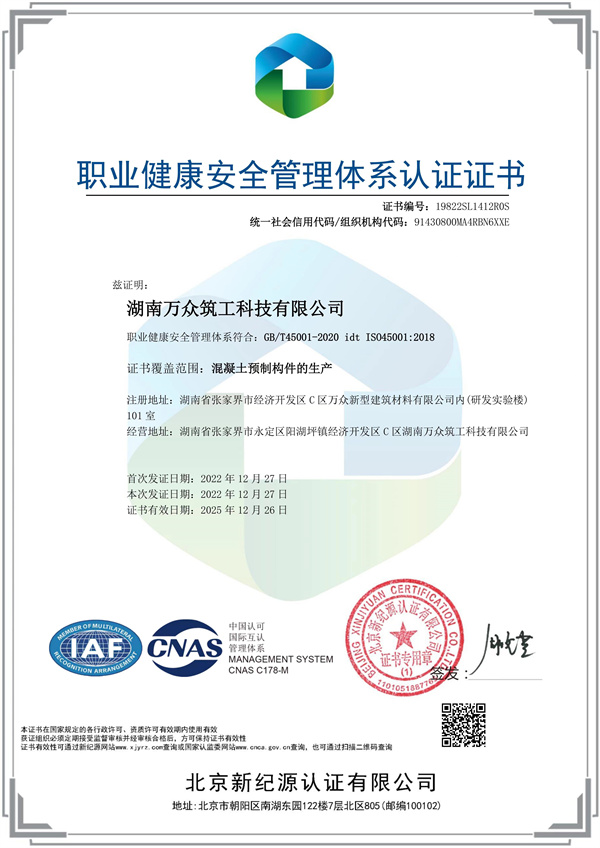 職業(yè)健康安全管理體系認(rèn)證證書
